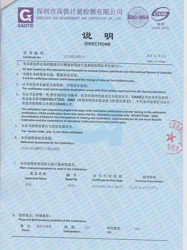 帶表卡尺校準證書