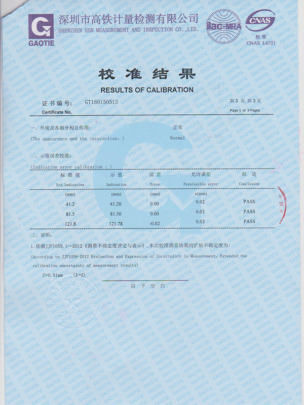 帶表卡尺校準(zhǔn)證書(shū)