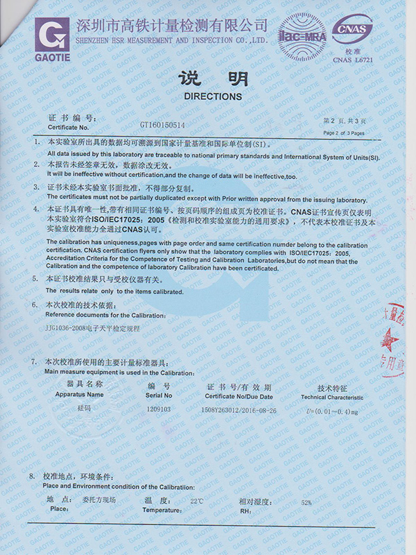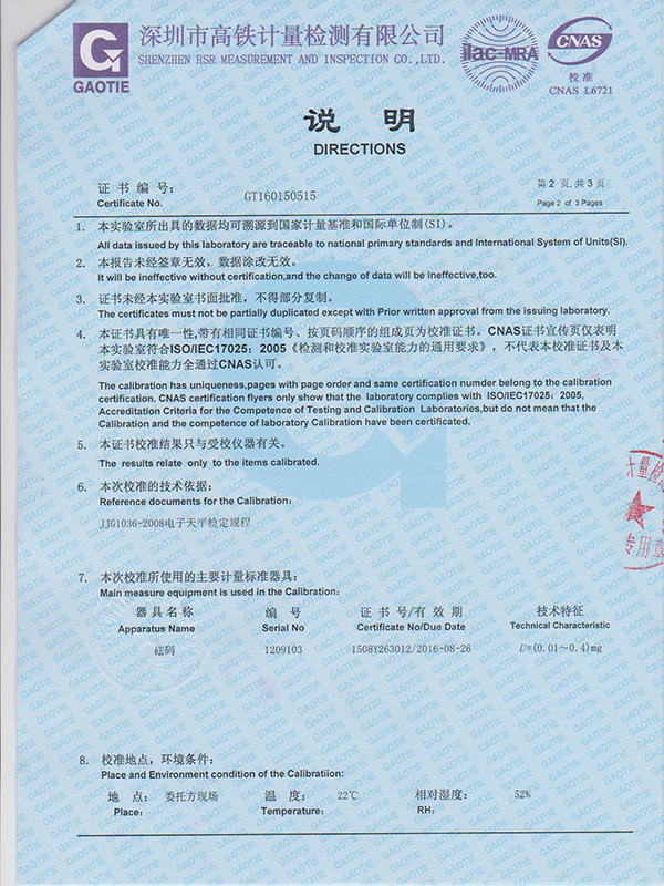 電子天平校準(zhǔn)證書(shū)